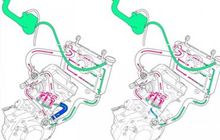 Kendati sama-sama pakai radiator untuk sistem pendinginannya, ternyata konstruksi jalur air antara All New CB150R dan CB150R beda. Kini dibikin lebih simpel agar pendinginan lebih maksimal.