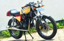 Heran dengan judul di atas? Nggak perlu heran, tengok saja sosok Honda CB100 yang satu ini. Sudah nggak menyisakan bentuk aslinya bro. Sebagai gantinya, modif dari Top Setup Kuztom Garage ini mengandalkan bodi cafe racer custom dengan emblem Triumph