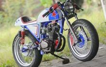 Honda GL 100 jadul ini layak diapresiasi. Tampilan klimis bin resik jadi ciri konsep cafe racer yang digarap Pandu Setyabudi dengan gaya ala Captain Amerika. Doi pemilik sekaligus modifikator yang ngendon di Jl. Raya Dieng, Km. 30, Banjarnegara, Jawa