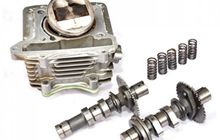 Isi paket hemat pertama Satria FU berupa seher Kawasaki Eliminator 66 mm plus boring, modif atau coak piston, per kopling, CDI BRT knalpot standar custom alias bobok, karbu Honda NSR SP PE 28 mm dan paking-paking.