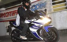 Di gelaran Test Ride Bareng Komunitas pada Jumat (6/6), OTOMOTIFNET.COM menyediakan produk sport fairing 250cc secara lengkap. Namun yang paling diburu para biker untuk diuji adalah Yamaha R25. Maklumlah, motor ini paling fresh from the oven.