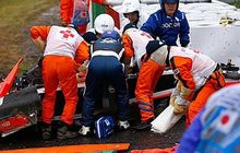 Pembalap tim Marussia Jules Bianchi mengalami cedera kepala berat akibat menabrak mobil crane (mobil pengangkat) yang sedang mengangkat mobil Adrian Sutil, Minggu (5/10). Insiden ini membuat panitia balapan mengibarkan bendera merah.