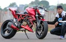 Untuk kesekian kalinya Honda Tiger ini dijadikan objek imajinasi Ipul alias Syaiful. Sempat tampil alakadar dengan pasang kaki-kaki limbah moge super gede, tapi ini kali diperbaharui dengan warna yang lebih eye catching.