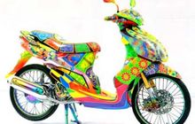 Suguhan baru coba ditawarkan Yamaha Mio Sporty lansiran 2011 milik Ali Hariyanto Ediman. Kalau sobat perhatikan, desain grafis yang dimainkan lewat sentuhan pen brush di bodi Mio ini tak ada yang sama. Baik itu di sisi kiri dan kanan.