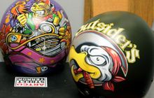 Teknik freehand pakai spidol Sharpie Marker di helm, bisa jadi alternatif disamping pakai pen brush. Garisnya lebih kasar dan natural. Seperti ditawarkan Gardu House lewat artis Toto Kismo, Amyx dan Adnan.
