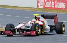 Narain Karthikeyan didaulat jadi pembalap pertama yang menjajal F112 dari tim Hispania Racing saat menjalani sesi pengambilan gambar di Sirkuit Catalunya, Spanyol.