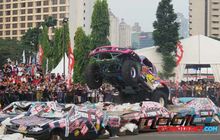 Di hari kedua OTOBURSA Tumplek Blek, Minggu (11/5) sang icon Gajah Monster kembali melakukan atraksi. Hanya, kali ini adegen terbang yang dipiloti Rio Fajar dari OTOMOTIF untuk melompati deretan mobil tidak semulus yang pertama.