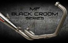 Knalpot racing MF Black Chroom Series dari Pro Speed untuk Yamaha YZF-R25 ini cukup unik. Lihat pipanya, melingkar di bagian kolong!