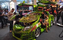 Dengan kelir yang cukup mentereng, Honda Brio Satya keluaran 2014 ini sudah memikat pengunjung Honda Jazz & Brio Tuning Contest 2016. Tambah lagi dengan modifikasi ekstrim 6 roda, makin banyak pengunjung yang berdecak kagum.