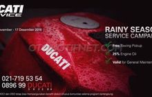 Mau servis motor saat musim hujan begini? Waduh, khawatir kehujanan di jalan saat menuju ke bengkel. Belum lagi motor kesayangan jadi kotor! Nah, asyik nih buat bikers moge Ducati. Pasalnya ada program ‘Rainy Season’ Service Campaign.