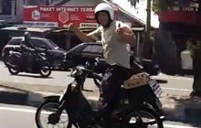 Sebagian ruas jalan Yogyakarta digemparkan perilaku seorang kakek yang mengendarai motor dengan melepas tangan sambil berdiri.