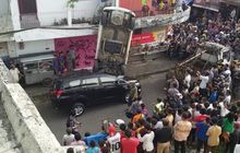 Brukk...Honda Jazz Terjun Bebas Dari Parkiran Lantai 2 Mall di Tasikmalaya