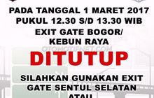 Terkait rombongan besar Raja Salman, yang akan menuju Istana Bogor. Besok (01/03), gerbang tol jagorawi ditutup mulai pukul 12.30 sampai 13.30 WIB
