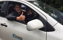 Unik, anggota DPRD Kab. Sidoarjo dari partai PKB ini menggunakan taksi saat survei trek sprint reli di Sentul, Jabar.