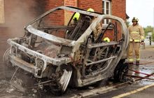 Sebuah mobil listrik keluaran terbaru, terbakar ketika charger sedang ditancapkan (di-cas) ke bodi mobil. Kejadian ini di Essex, Inggris hari Minggu (9/7).