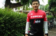 Rio Haryanto sedang beristirahat usai bersepeda bersama rekan-rekan lain di warung susu segar Boyolali....