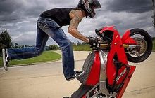 Gokil! Hindari Banjir, Biker Ini Malah Wheelie Sambil Berdiri
