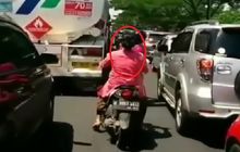 Jangan Ditiru! Ibu Berkonde Naik Motor Gak Pakai Helm, Videonya Viral