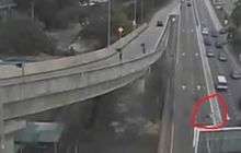Ngeri! Pengendara Motor Tabrak Dinding Fly Over dan Terbang Ke Aspal Tertangkap Kamera