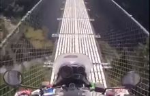 Bayangkan, berkendara roda dua di jembatan gantung yang tingginya mencapai ratusan meter dari dasar jurang. sepertinya nyali saja nggak cukup