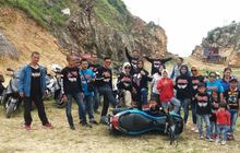 Komunitas Yamaha NMAX satu ini memang unik, kalau difoto beramai-ramai pasti ada saja Yamaha NMAX yang ditidurkan posisinya.