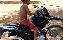 Seorang bocah tanpa busana terlihat sedang menggeber-geber gas sebuah motor trail di dalam video yang diunggah oleh akun Instagram @automotips.