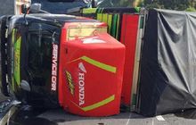 Duh, Truk Pengangkut Motor Balap Terbalik, Diduga Karena Ban Pecah
