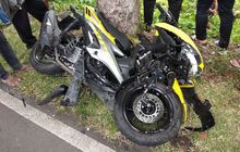 Kecelakaan...Yamaha Aerox Umur Sebulan Sudah Hancur Lebur, Bodi Remuk, Kondisi Tersandar di Pohon