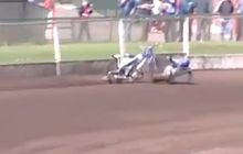 Sebuah kejadian unik sekaligus mengerikan terjadi di sebuah trek balap motor broadsiding yang sempat membuat penonton panik.