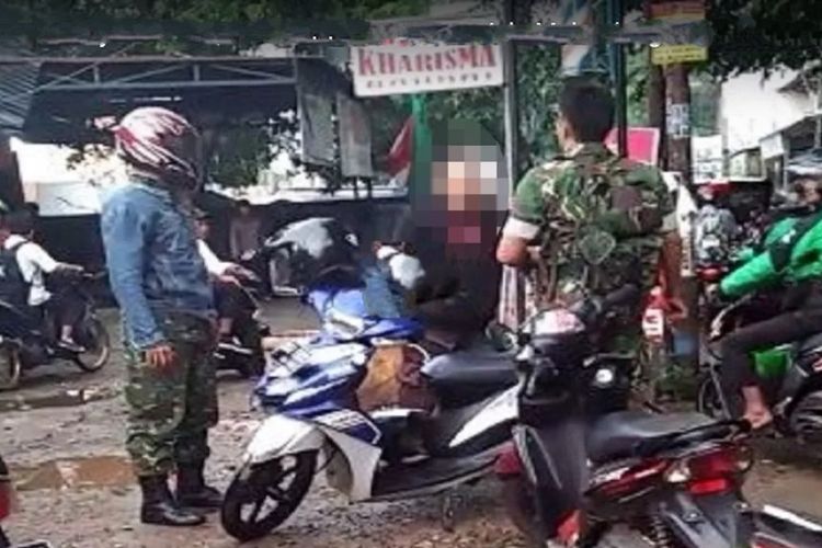 Bocah yang diperkirakan usia SD atau SMP mengendarai mobil. Karena tidak benar dalam mengendarai mobil, akhirnya dia ditegur oleh anggota TNI.