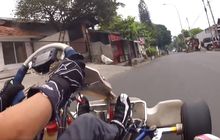 Pengemudinya tampak antre di lampu merah sebelum belok masuk ke jalan raya. Dia pun mulai menggeber gokart bermesin 2-Tak....