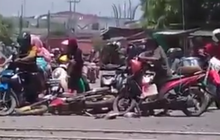 Berhenti Terlalu Dekat Sama Rel, Motor Rubuh Keserempet Kereta Lewat