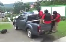 Gak Jadi Gagah, Petugas Bersenjata Berjatuhan Dari Bak Mobil Usai Tangani Keadaan