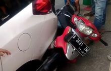 Apes, Ini Namanya Sudah Jatuh Tertimpa Tangga, Suzuki Shogun Terjepit Oleh Mobilio Yang Kegencet Kontainer