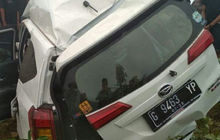 Mobil Daihatsu Sigra tertabrak kereta api di perlintasan sebidang di Desa Iser, Kecamatan Petarukan, Kabupaten Pemalang