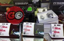 Aneka lampu light emitting diode (LED) diobral di stand Luminos Indonesia. Lampu led yang dijual rata-rata jenis soket T10.