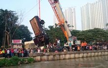 Tim gabungan menemukan jenazah sopir kendaraan bak terbuka (pick up) pengangkut puing yang hilang akibat hanyut di sungai Kalimalang