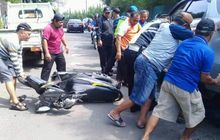 Sebuah mobil Daihatsu Terios B 7882 yang dikemudikan seorang pria setengah baya, menabrak dan melindas sepeda motor