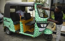 Ada pria rela mengecat bajaj miliknya dengan tema retro seperti corak yang menghiasi seragam atau kaos jersey milik timnas Nigeria.