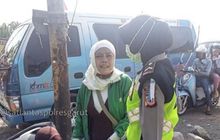 Seorang ibu sesegukan karena dikira ditinggal suaminya di SPBU Garut saat perjalanan mudik Lebaran lalu