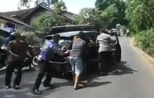 Bagaikan Superman, Polisi Gesit Dorong Daihatsu Ayla dan Suzuki Carry Yang Berhenti Di Tanjakan