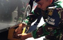 Petugas dari TNI AL dan Avsec Bandara Juanda akan menindak tegas pelanggar parkir dengan cara menggembok atau menggembosi ban kendaraan.
