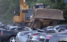 Video yang memperlihatkan deretan mobil mewah seperti Ferrari, Lamborghini, Mustang dan Porsche dilindas buldozer tersebar di media sosial.