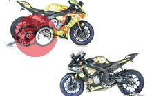 AGV Pista GP ‘Soleluna’. menjadi inspirasi bagi David Tanuwidjaja yang memodifikasi Yamaha YZF-R1 miliknya dengan motif helm VR46.