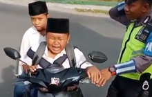 Anak SMP mengendarai motor matik bersama temannya dihentikan polisi. Sontak si anak menangis sesegukan ketakutan ditilang.