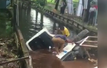 Video penyelamayan pria diduga gangguan jiwa yang menyabotase truk molen hingga membuat truk terbaring di selokan
