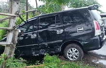 Parah, sisi kiri Toyota Kijang Innova dicium Suzuki Carry sampai ringsek dan nyungsep ke semak-semak