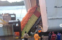Detik-Detik Truk Tronton Tercebur Ke Laut Saat Pintu Kapal Patah