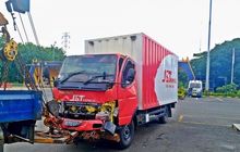 Rekan Tabrak Rekan, Truk Ekspedisi Sundulan Sampai Terguling di Tol