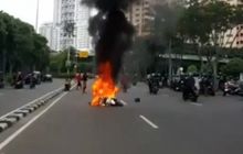 Terjadi motor terbakar di ruas jalan Kemayoran, Jakarta Pusat (18/1). Dalam video yang diunggah oleh @jktinfo, terlihat api yang sedang berkobar.